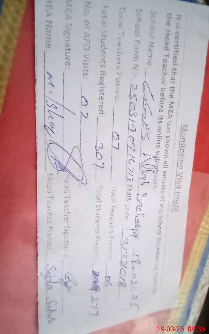 | EMIS Code: 31321018 | Name of School: GGES ALLAH BACHAYA KHAN | |||