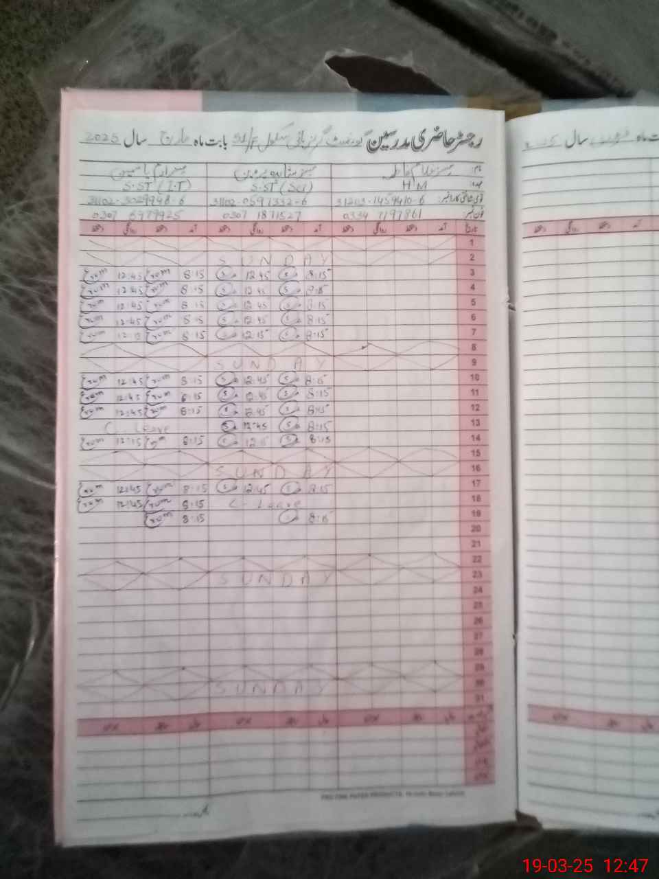 | Name: Sh**** Pe**** Designation: (School Headmaster's/Headmistress's) SST Sci Phone/Cell Number: 03**** |