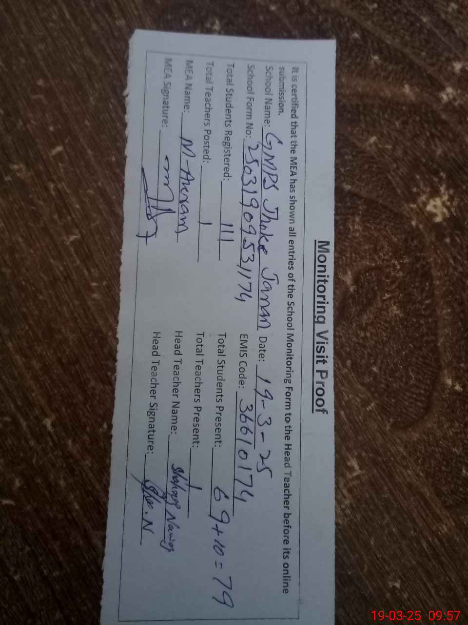 | EMIS Code: 36610174 | Name of School: GMPS JHOKE JANAN | |||