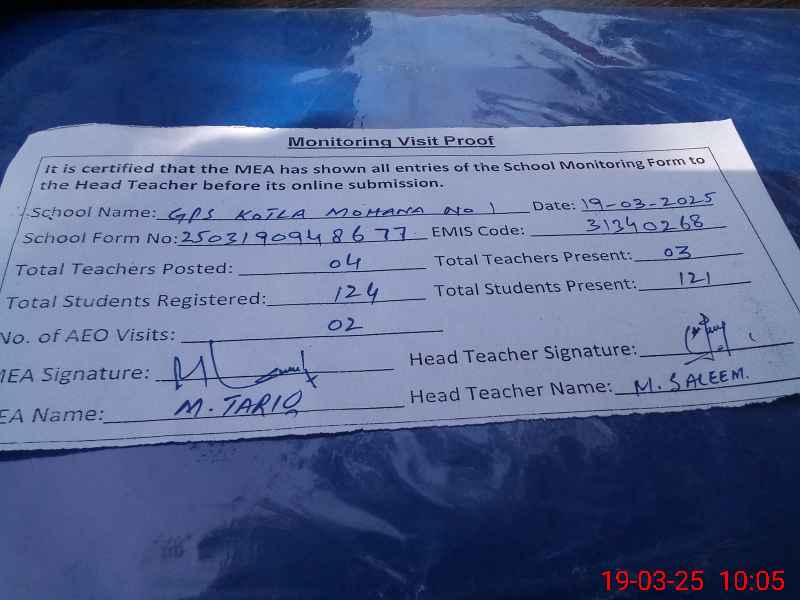 | EMIS Code: 31340268 | Name of School: GPS KOTLA MOHANA NO. 1 | |||