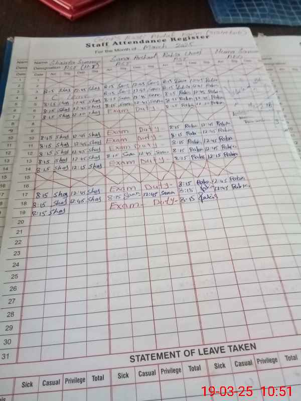 | 31**** | Sa**** Ar**** | 1 | 0 | 0 | 0 | 0 | 0 | 0 | 0 | 0 | 0 | Exam Duty | |