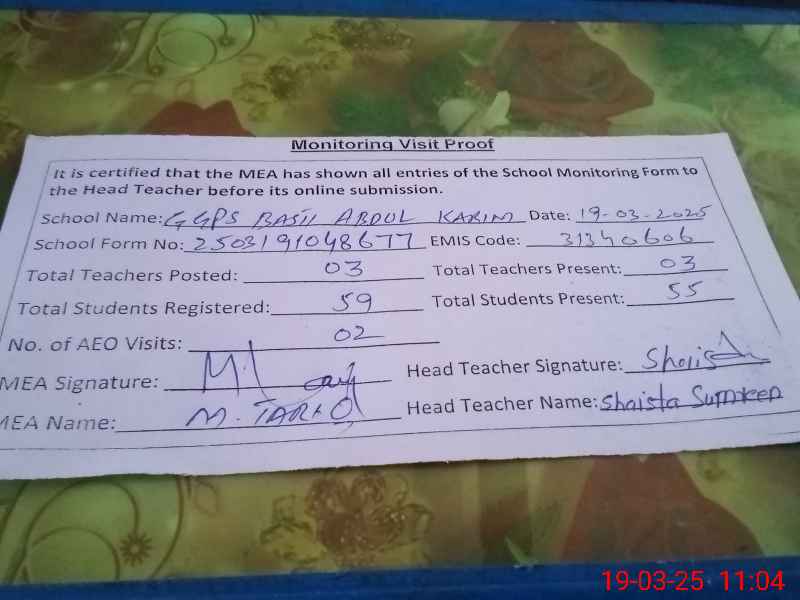 | EMIS Code: 31340606 | Name of School: GGPS ABDUL KARIM | |||
