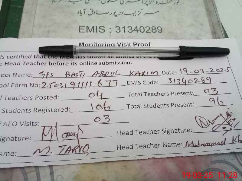 | EMIS Code: 31340289 | Name of School: GPS BASTI ABDUL KARIM | |||