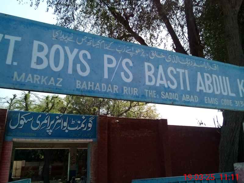 | District: RAHIMYAR KHAN | Tehsil: SADIQABAD | Markaz: BAHADAR PUR-MALE | Level: Primary | |
