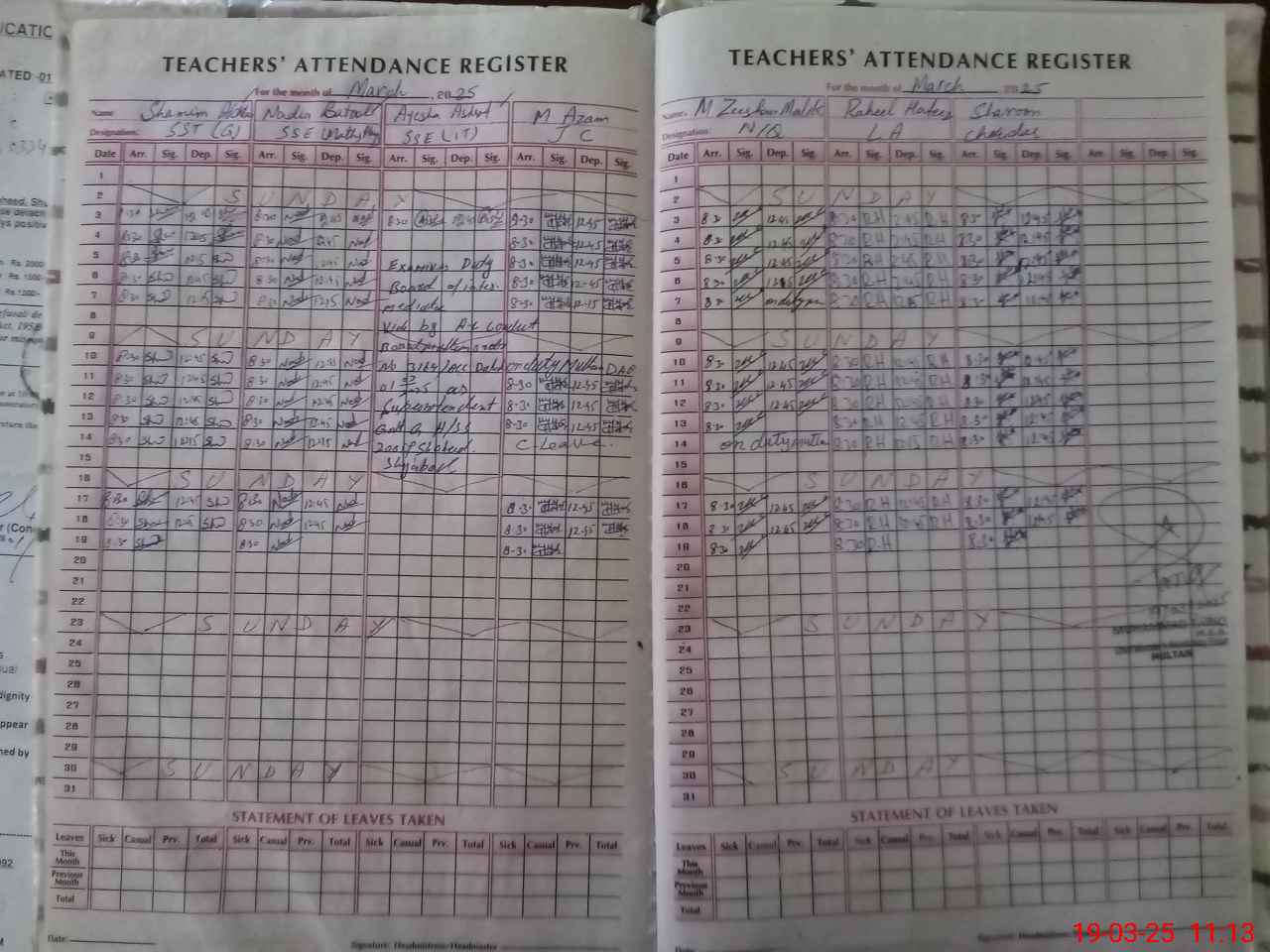 | 36**** | Ay**** As**** | 6 | 2 | 0 | 0 | 0 | 0 | 0 | 0 | 0 | 0 | 0 | Exam Duty |