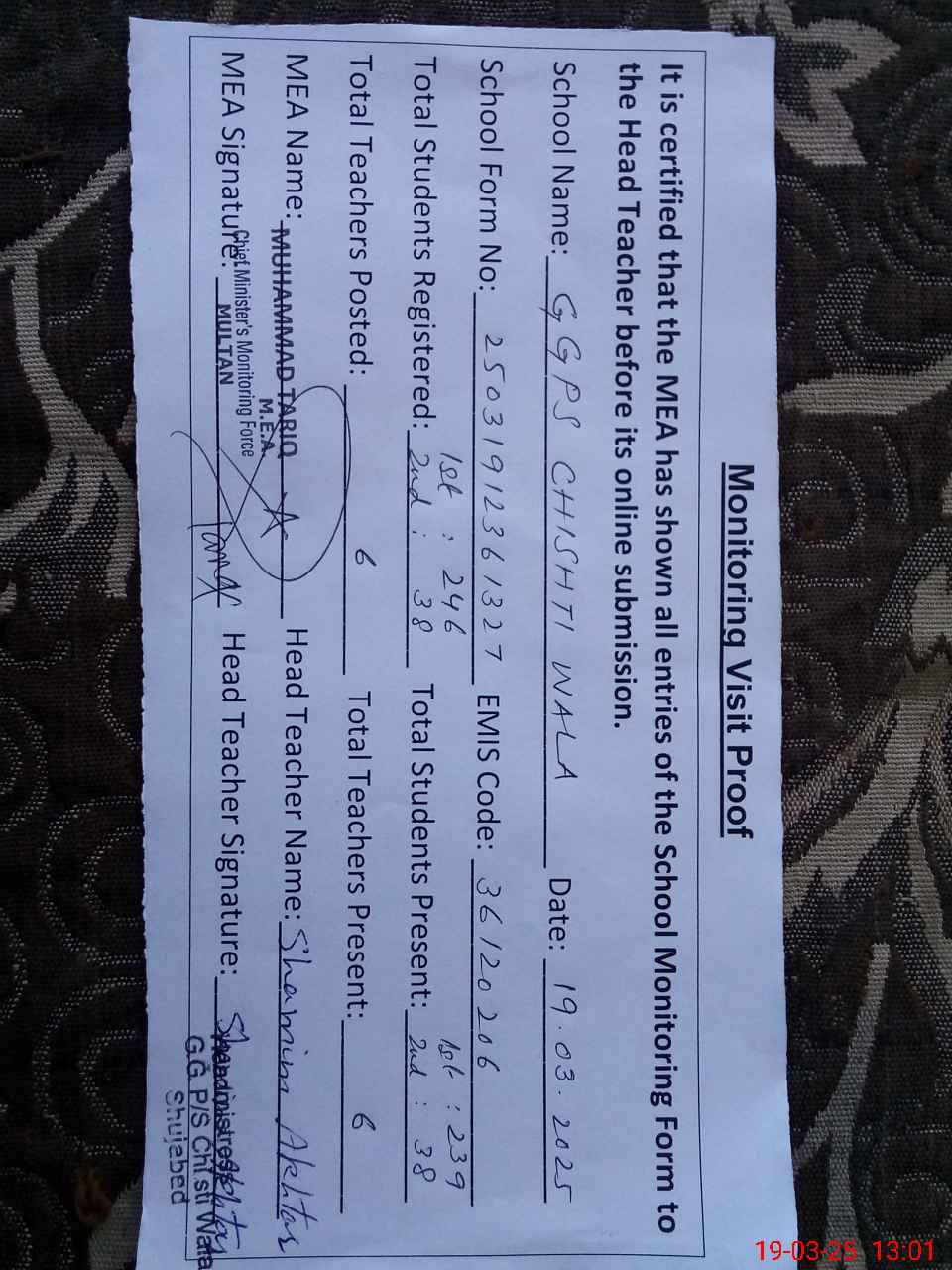 | EMIS Code: 36120206 | Name of School: GGPS CHISHTI WALA SHUJABAD | |||