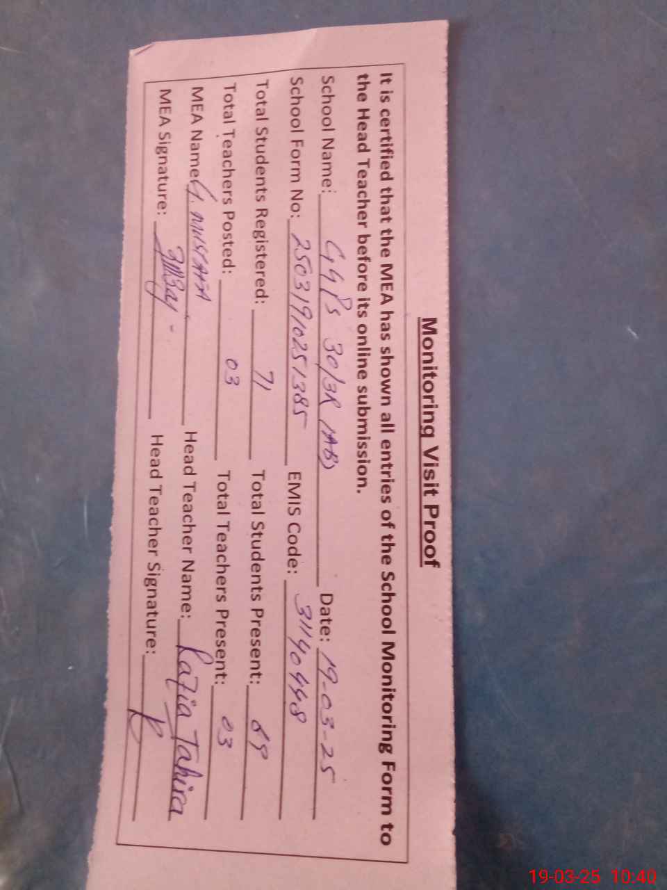 | EMIS Code: 31140448 | Name of School: GGPS CHAK 30/3-R AB | |||