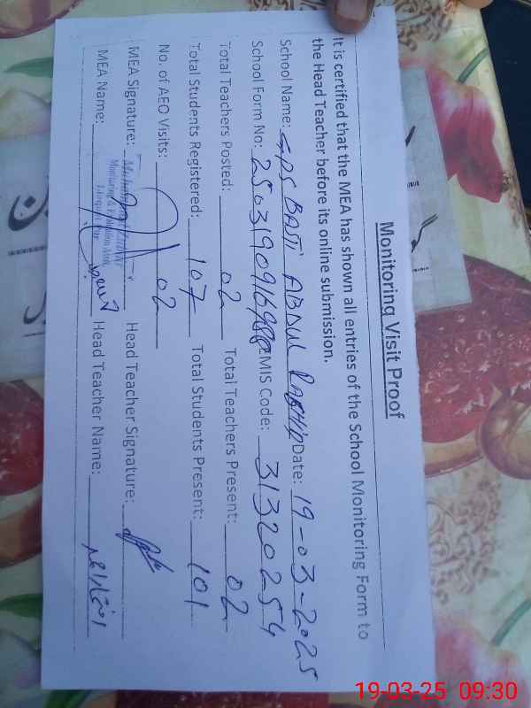 | EMIS Code: 31320254 | Name of School: GPS BASTI ABDUL RASHEED SIAL | |||