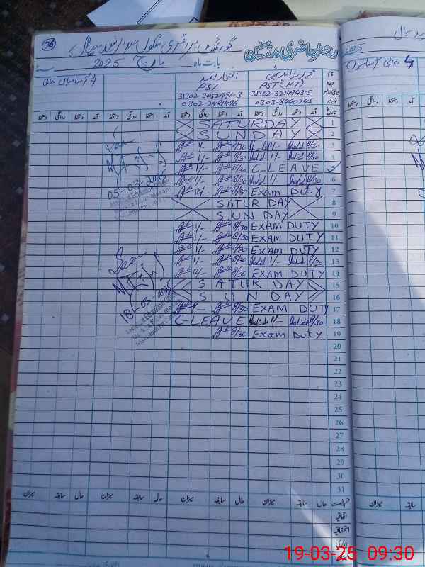 | Name: Mu**** Sh**** Bh**** Designation: (School Headmaster's/Headmistress's) PST Phone/Cell Number: 03**** |