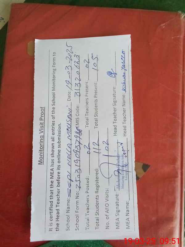 | Attendance Register | Head Teacher | MEA with School | Visit Proof |