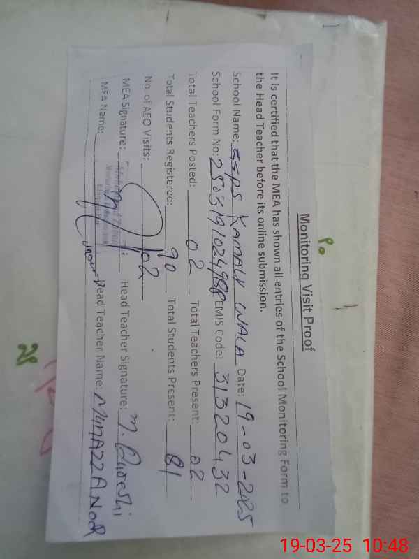 | Name: MU**** NO**** QU**** Designation: (School Headmaster's/Headmistress's) PST/PTC/JV Phone/Cell Number: 03**** |