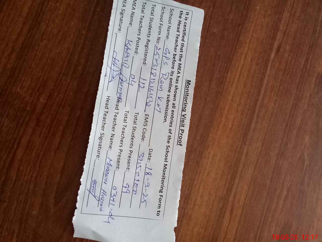 | EMIS Code: 31150100 | Name of School: GPS RAMKOT | |||