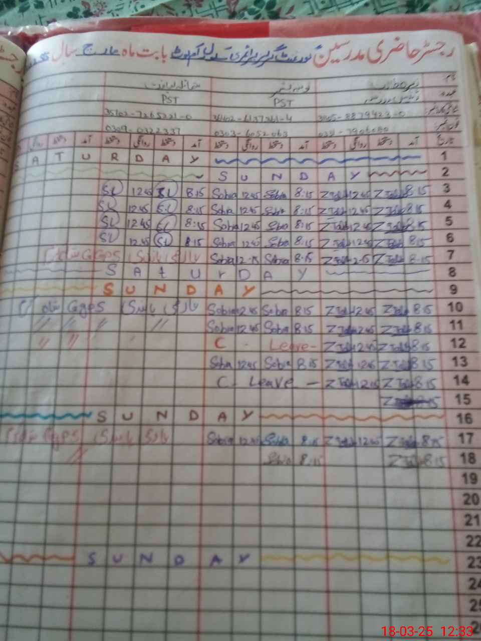 | CNIC | Full Name | Designation | R/C | Absence During Last Calender Month |