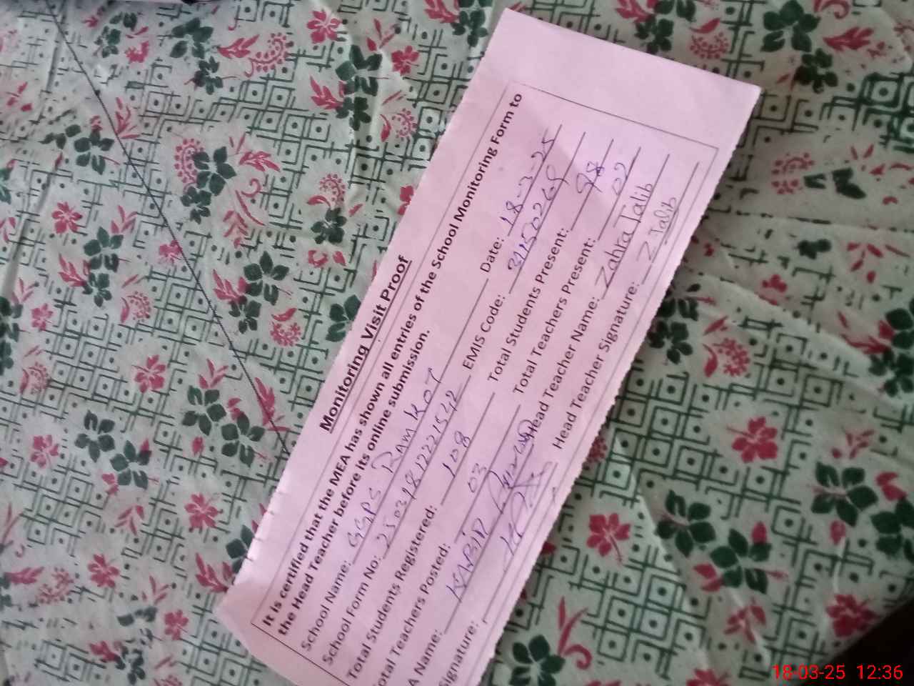| Name: Zu**** Ta**** Designation: (School Headmaster's/Headmistress's) Pst Phone/Cell Number: 03**** |