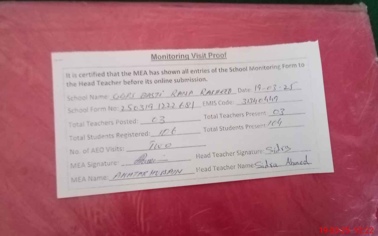 | EMIS Code: 31340449 | Name of School: GGPS BASTI RANA RASHID | |||