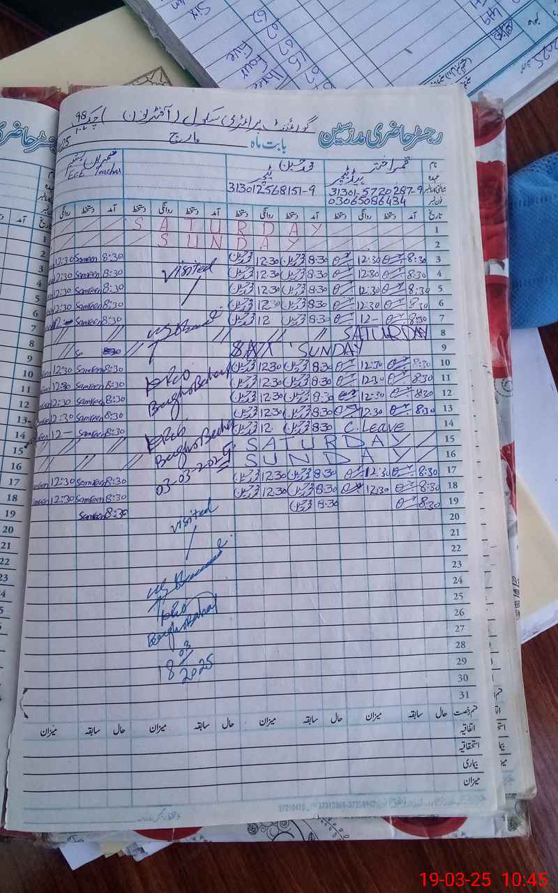 | Name: Qa**** AK**** Designation: (School Headmaster's/Headmistress's) PST Phone/Cell Number: 03**** |