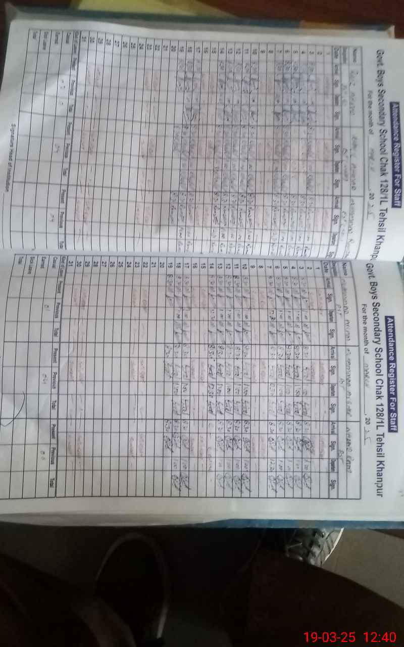 | Remarks (Use Separate Page if Required): ENROLMENT TAKEN FROM STUDENTS TAKEN FROM ATTENDENCE REGISTERS OF STUDENTS ATTENDENCE 0F STUDENTS TAKEN FROM ROZNAMCHA HEAD COUNT NOT CARRIED OUT DUE TO EXAM 2025 | |||||