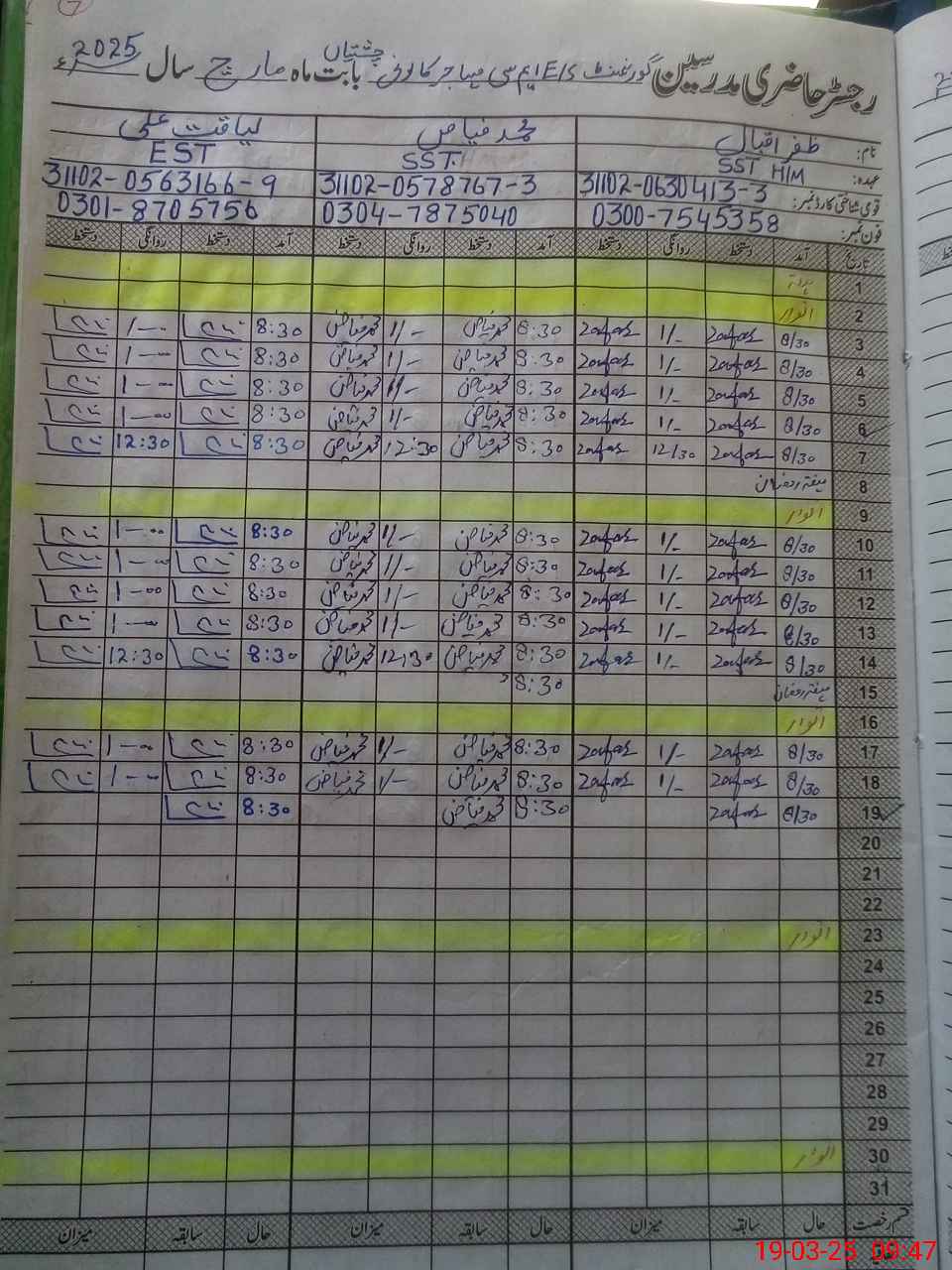 | Name: ZA**** IQ**** Designation: (School Headmaster's/Headmistress's) SST ARTS Phone/Cell Number: 03**** |