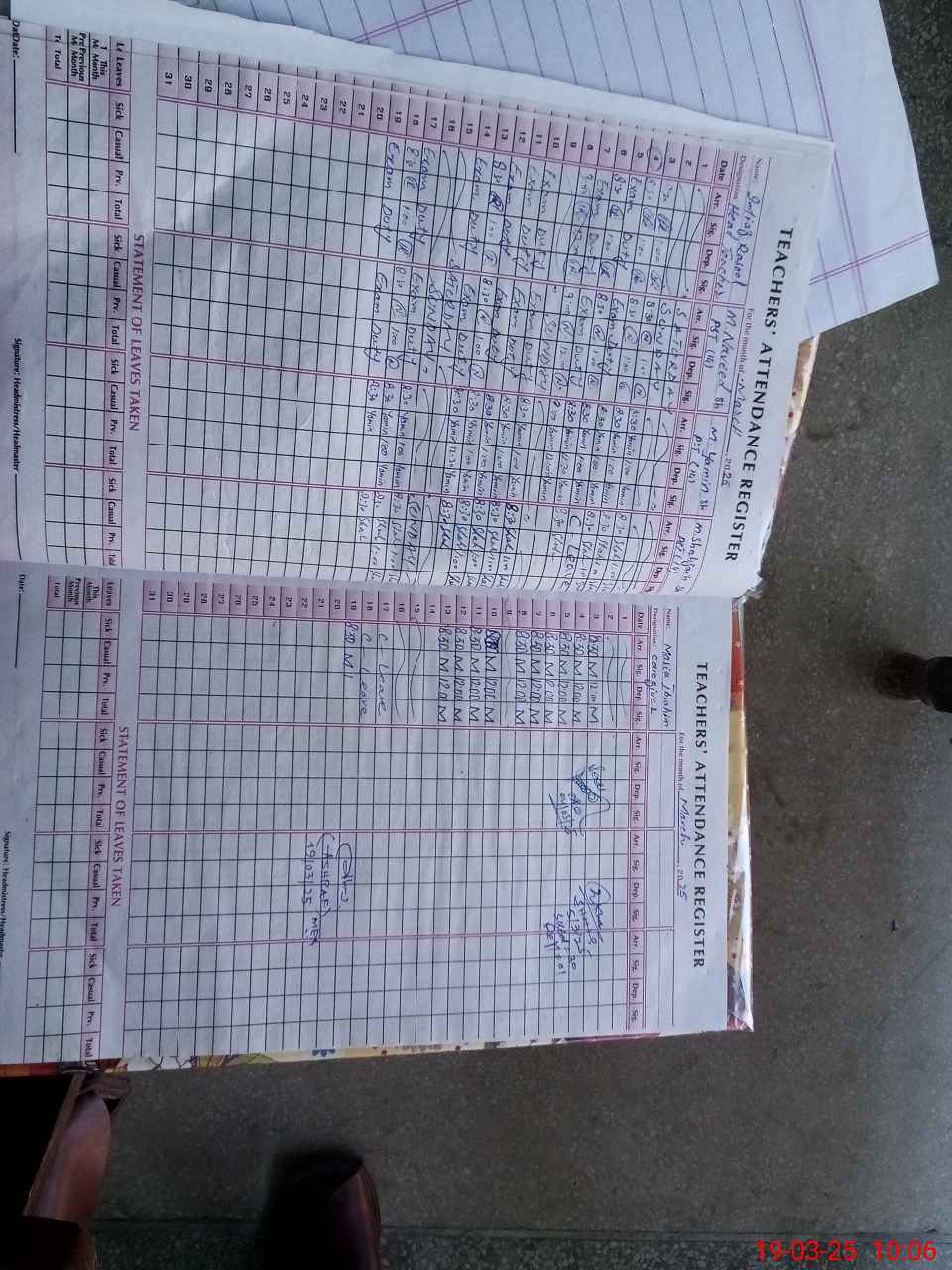 | 32**** | Im**** Ra**** | 1 | 2 | 0 | 0 | 0 | 0 | 0 | 0 | 0 | 2 | Exam Duty | |