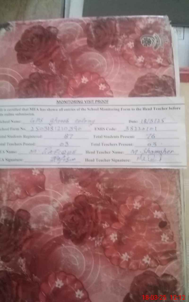 | EMIS Code: 38220101 | Name of School: GPS GHEREEB COLONY, ADHI KOT | |||