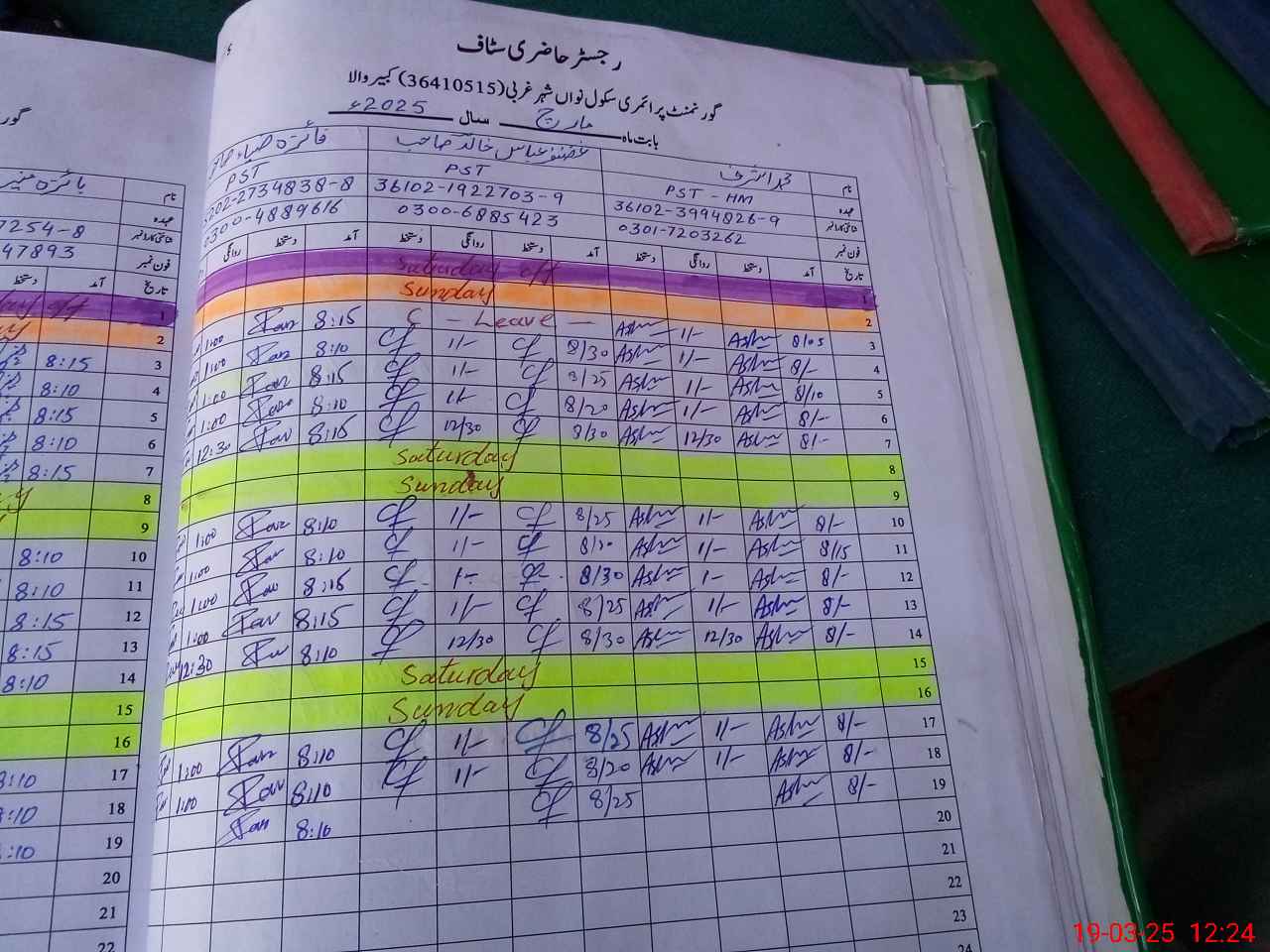 | CNIC | Full Name | Designation | R/C | Absence During Last Calender Month |