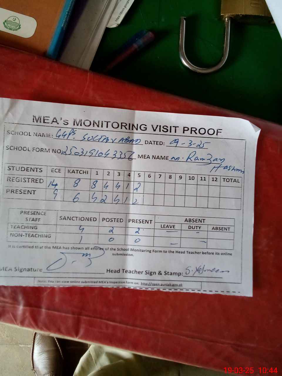 | Certified that this School was Inspected by the Undersigned MEA/DMO Today and the Information Stated Above is as Per Record. | |||||