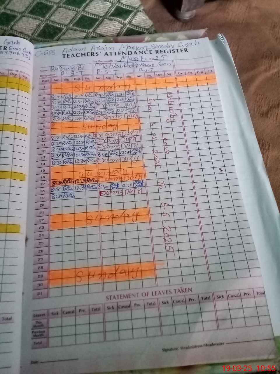 | 31**** | Me**** Kh**** | PST | Regular | 0 | 0 | 0 | 0 | 0 | 0 | 0 | 0 | 0 | Exam Duty |