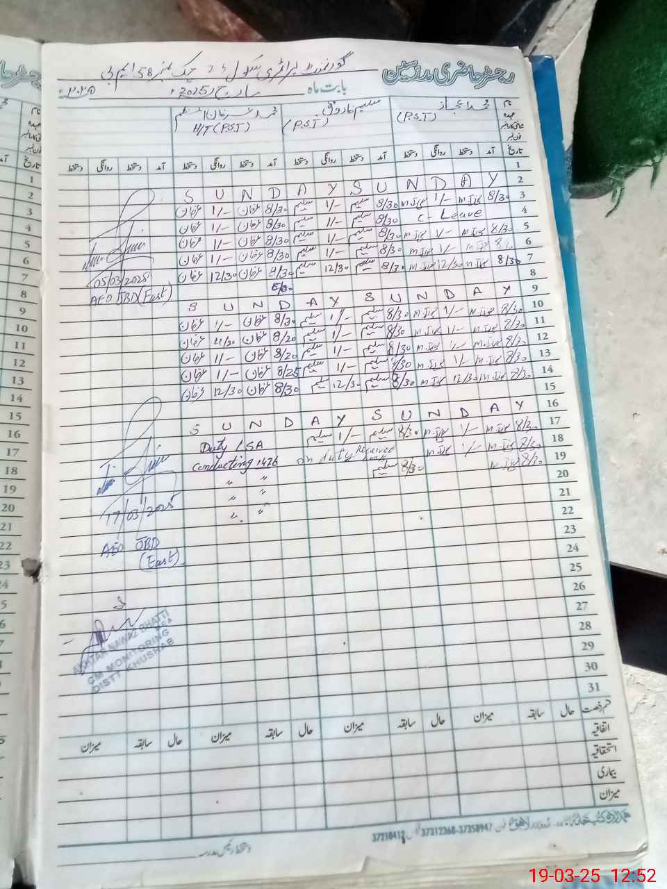 | Name: Mu**** Ej**** Designation: (School Headmaster's/Headmistress's) PST Phone/Cell Number: 03**** |
