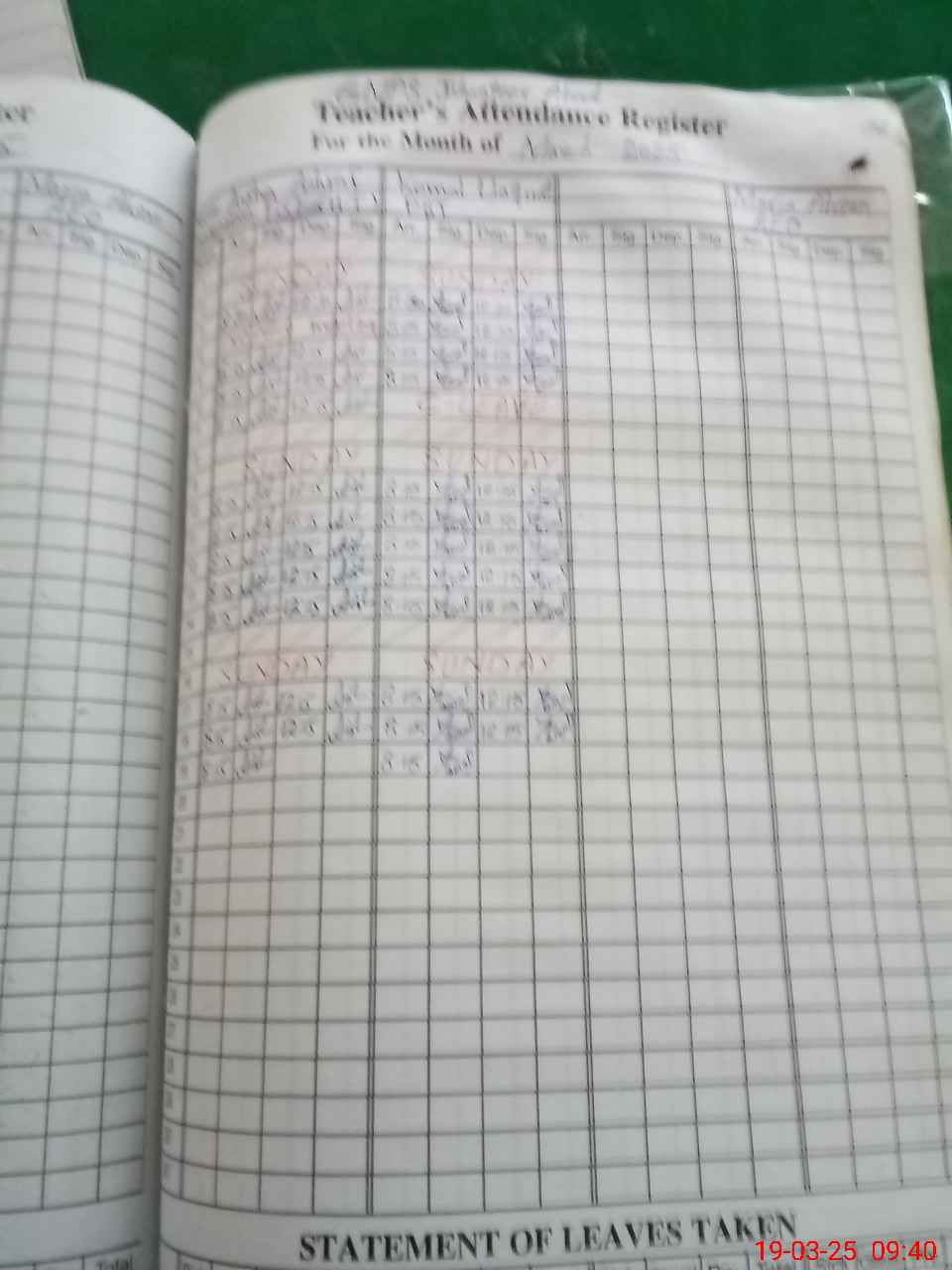 | Leave | Duty | Absent | Maternity | Medical | Ex- Pak |