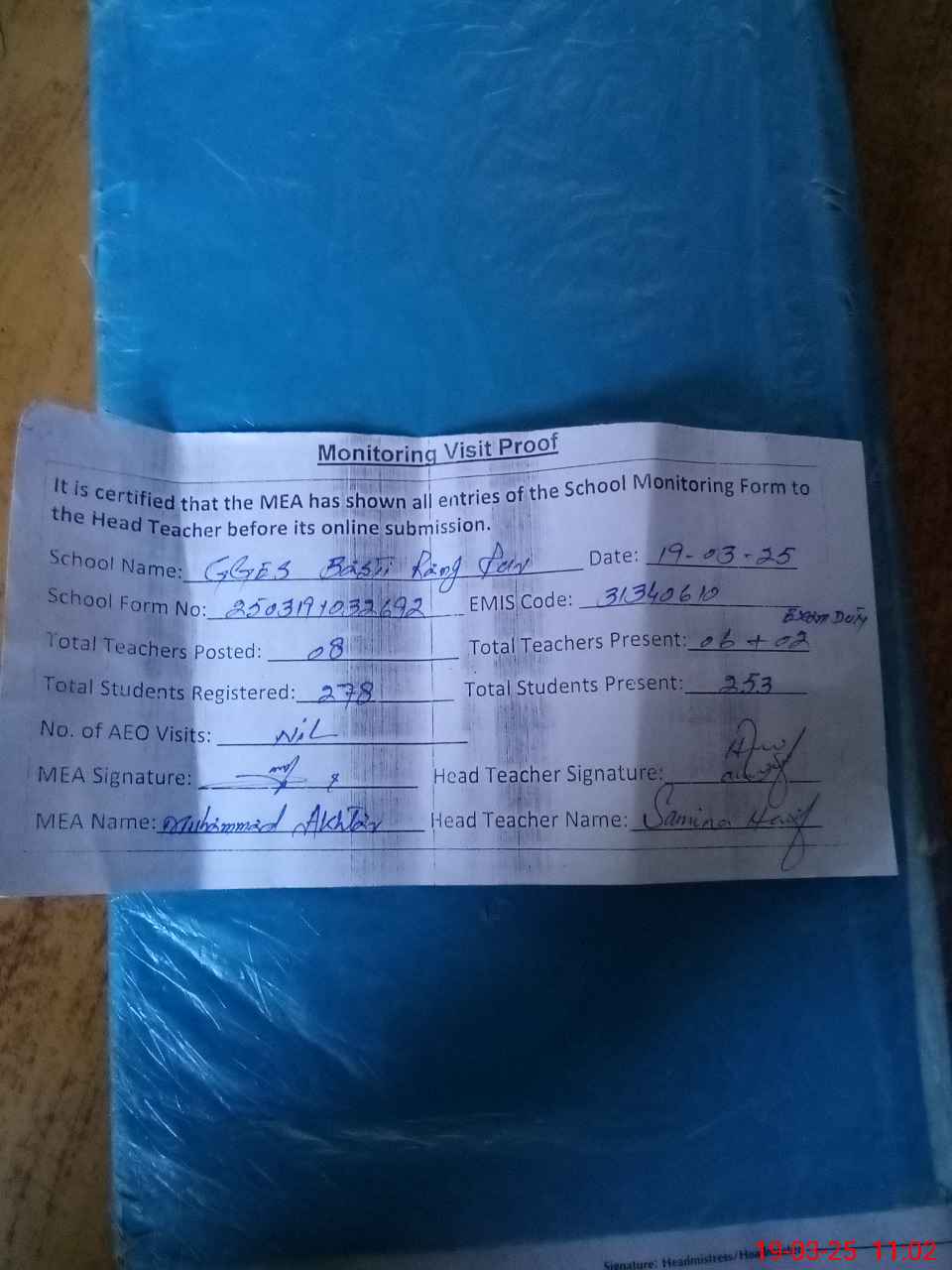 | EMIS Code: 31340610 | Name of School: GGES BASTI RANG PUR LARAN | |||