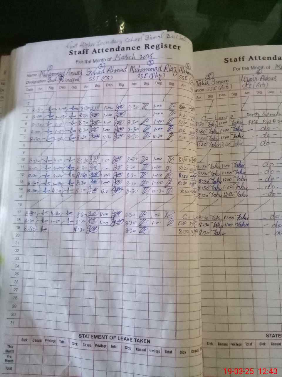 | 31**** | Mu**** As**** | Regular | 0 | 0 | 0 | 0 | 0 | 0 | 0 | 0 | 0 | Exam Duty | |