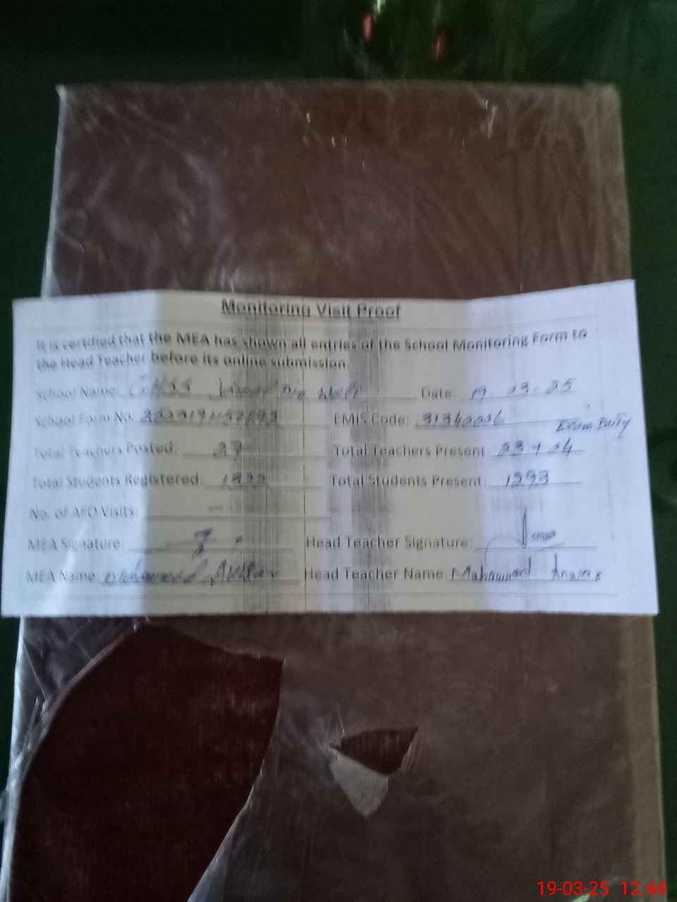| EMIS Code: 31340006 | Name of School: GHSS JAMAL DIN WALI | |||