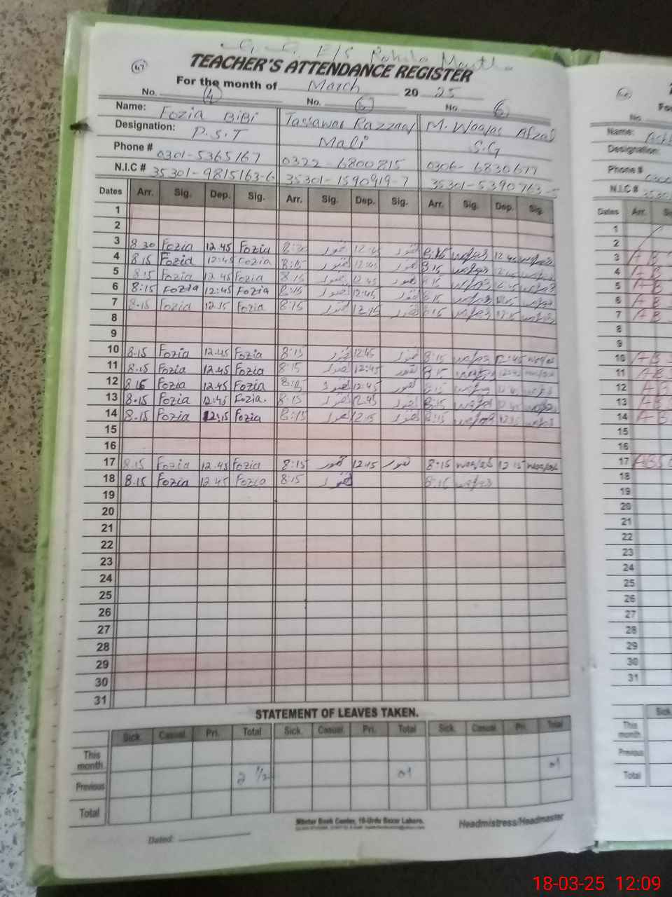 | Name: Na**** Ak**** Designation: (School Headmaster's/Headmistress's) EST Phone/Cell Number: 03**** |