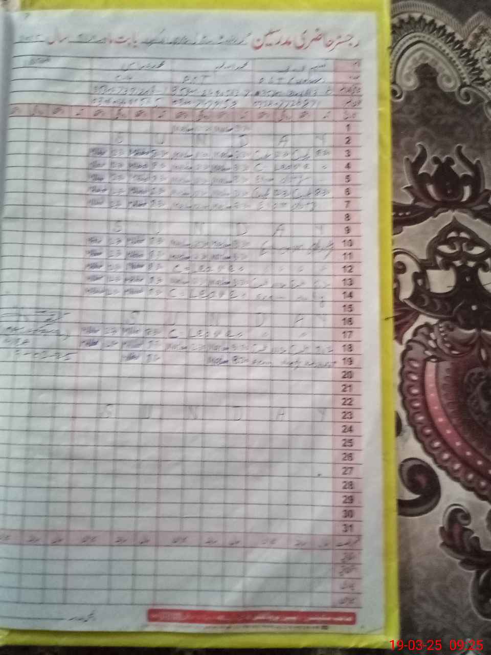 | CNIC | Full Name | Designation | R/C | Absence During Last Calender Month |