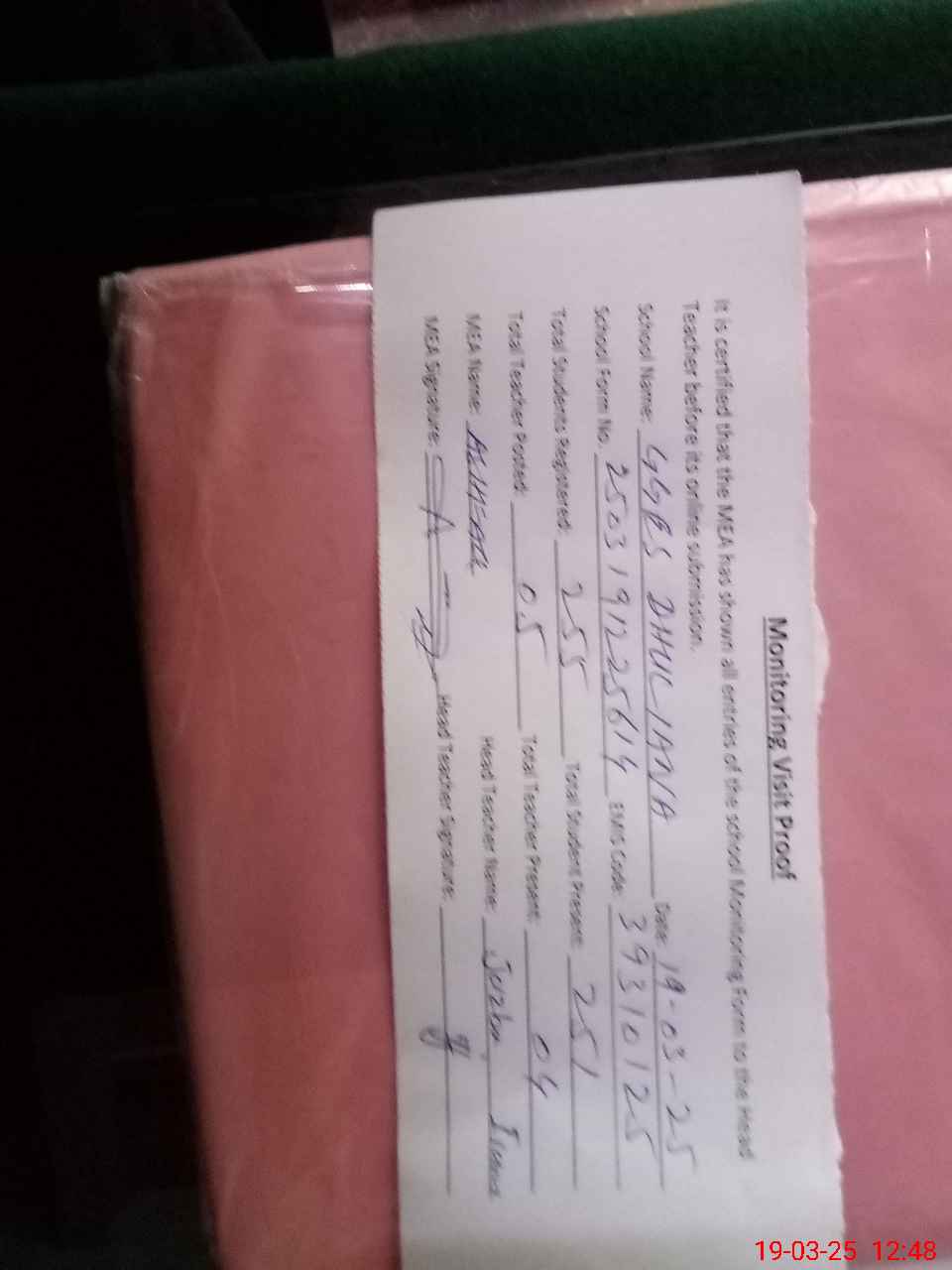 | Certified that this School was Inspected by the Undersigned MEA/DMO Today and the Information Stated Above is as Per Record. | |||||