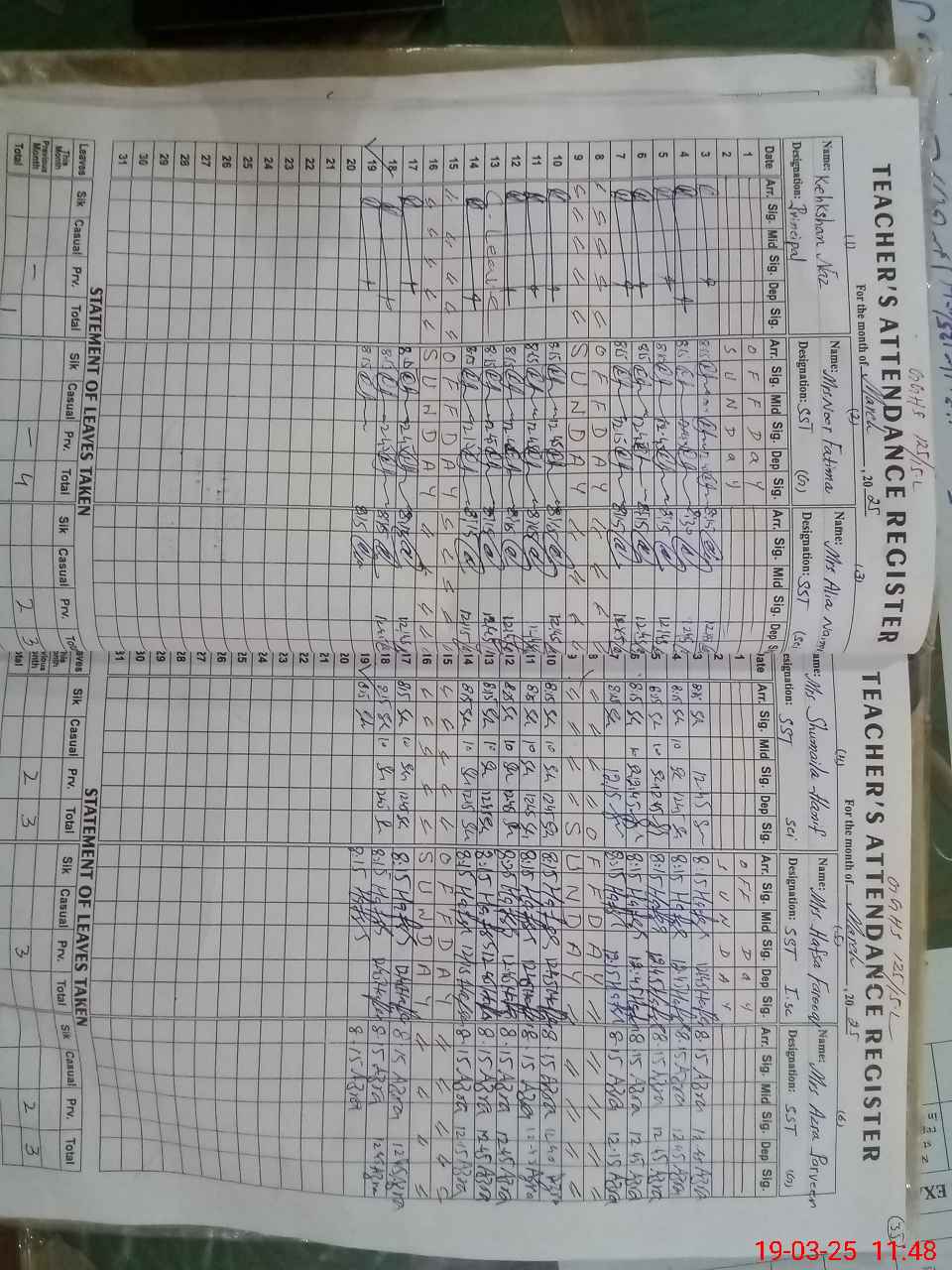 | 37**** | Sa**** Ma**** | 1 | 2 | 0 | 0 | 0 | 0 | 0 | 0 | 0 | 2 | Exam Duty | |