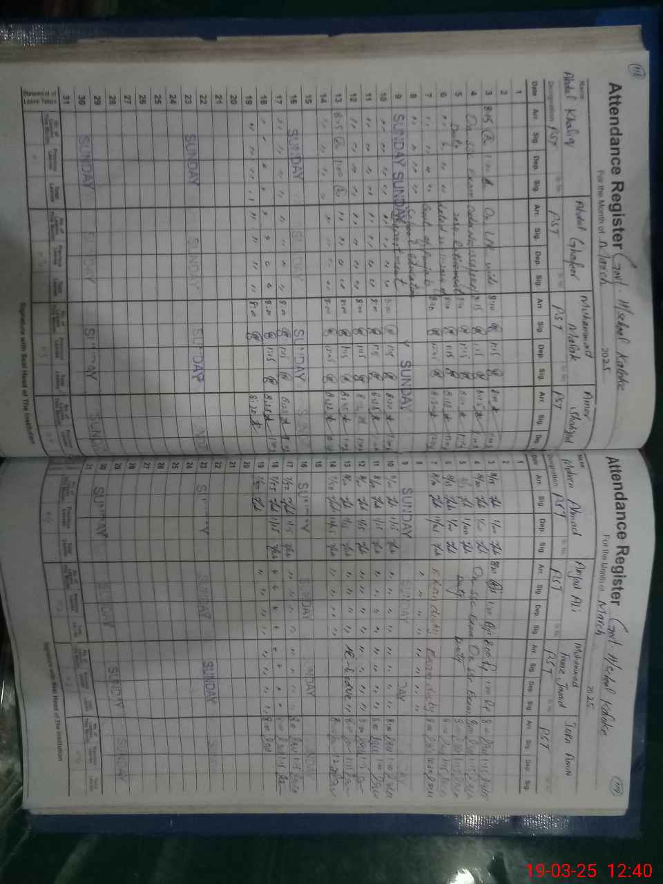 | 35**** | Ab**** Kh**** | PST | Regular | 0 | 0 | 0 | 0 | 0 | 0 | 0 | 0 | 0 | Exam Duty |