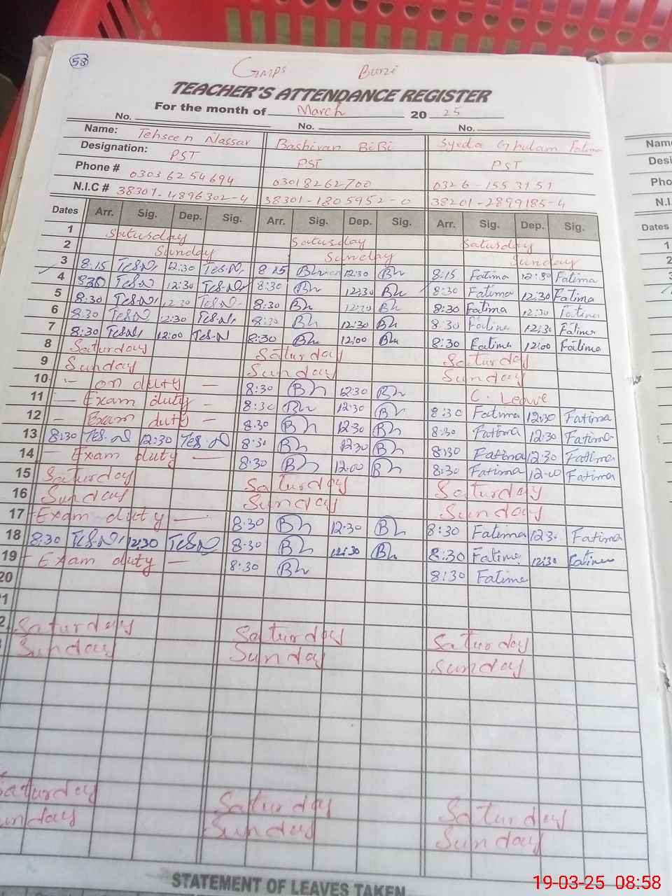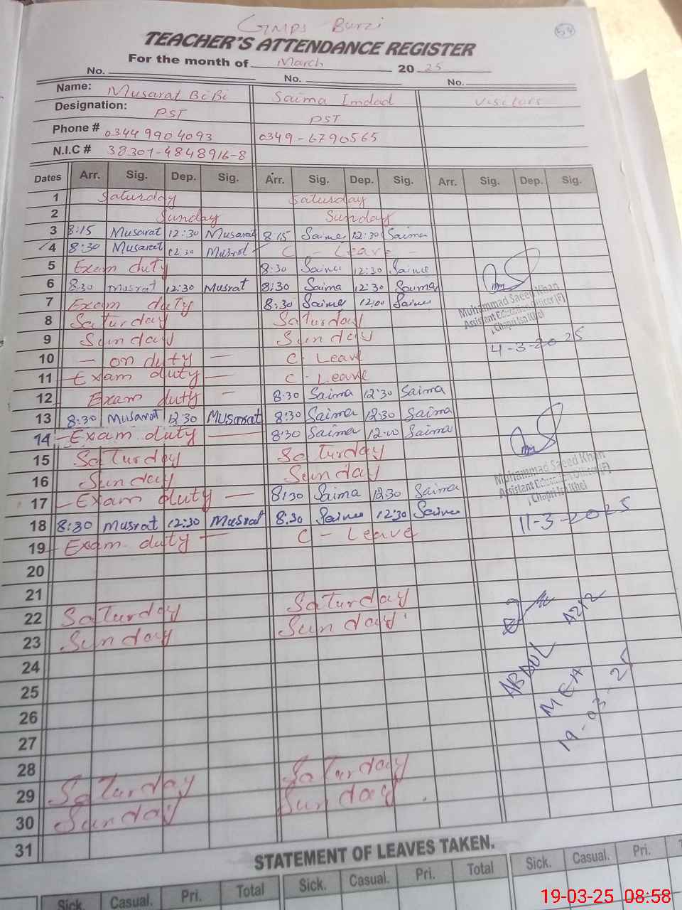 | 38**** | Ta**** Na**** | PST | Regular | 0 | 0 | 0 | 0 | 0 | 0 | 0 | 0 | 0 | Exam Duty |