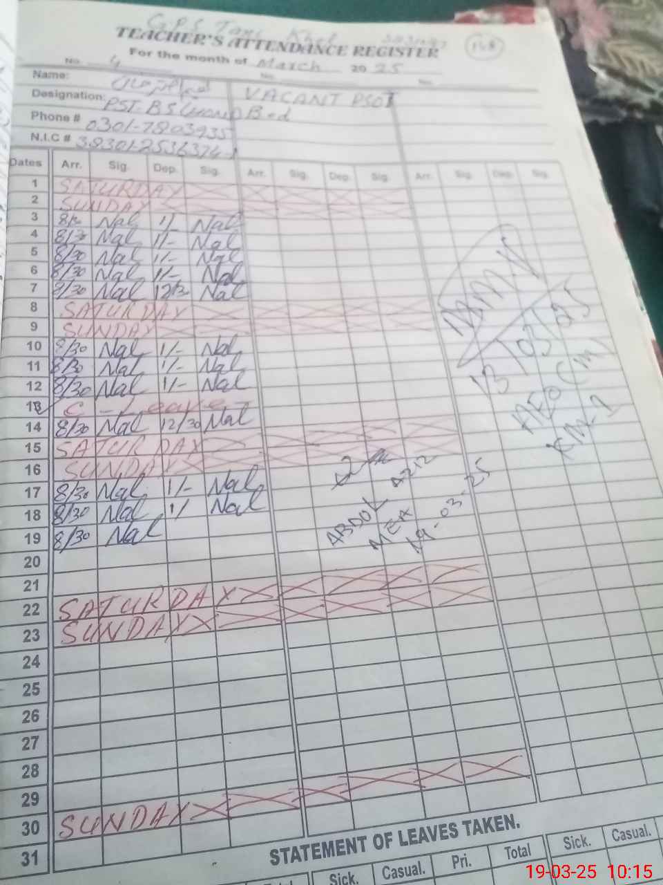 | 38**** | Gh**** Ra**** | PST | Regular | 0 | 0 | 0 | 0 | 0 | 0 | 0 | 0 | 0 | Exam Duty |