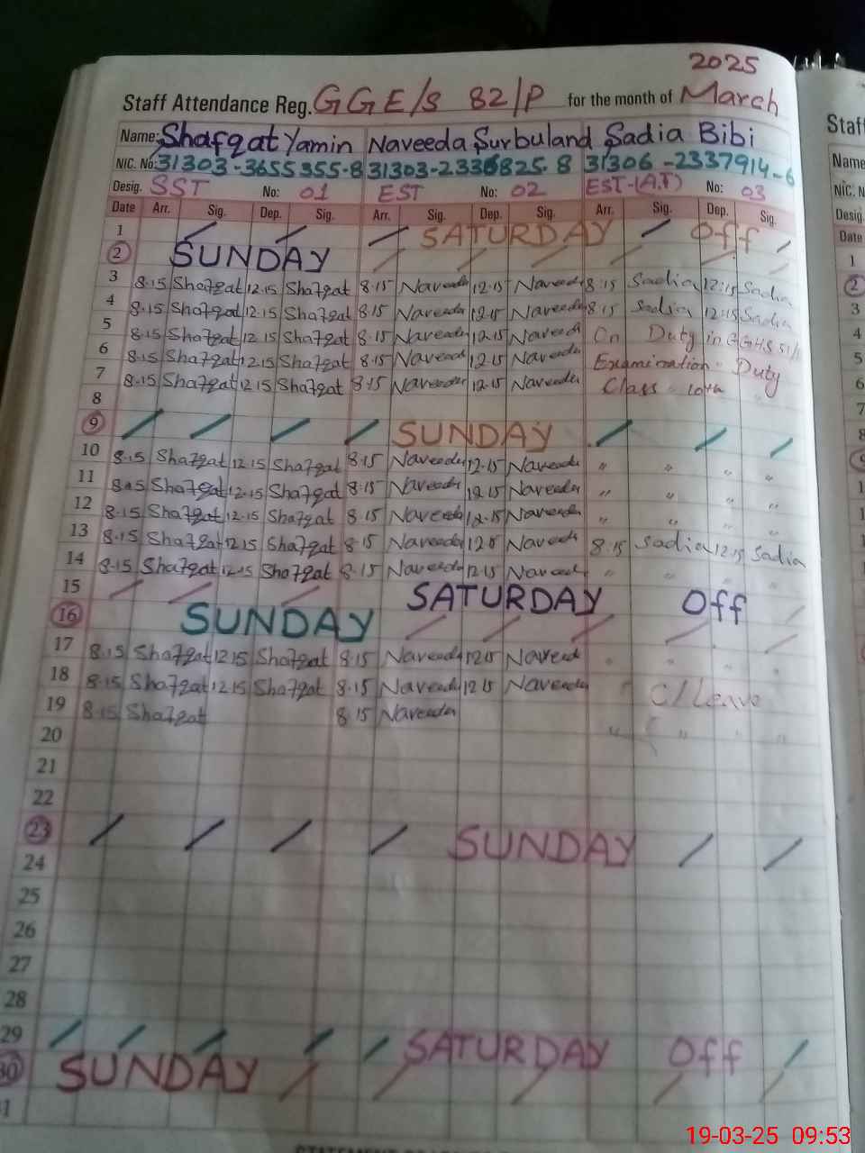 | 31**** | Sh**** Ak**** | PST | Regular | 0 | 0 | 0 | 0 | 0 | 0 | 0 | 0 | 0 | Exam Duty |