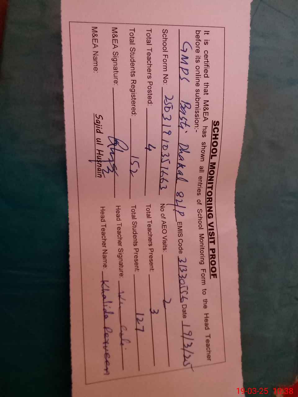 | EMIS Code: 31330556 | Name of School: GMPS BASTI DHAKAL CHAK 82/P | |||