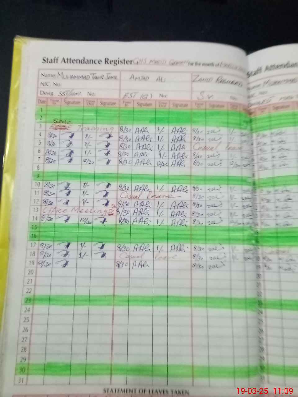 | CNIC | Full Name | Designation | R/C | Absence During Last Calender Month |