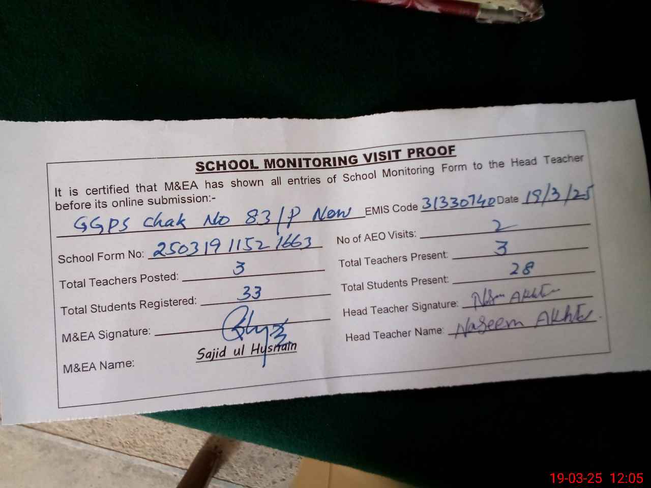 | EMIS Code: 31330740 | Name of School: GGPS CHAK NO. 83/P NEW | |||