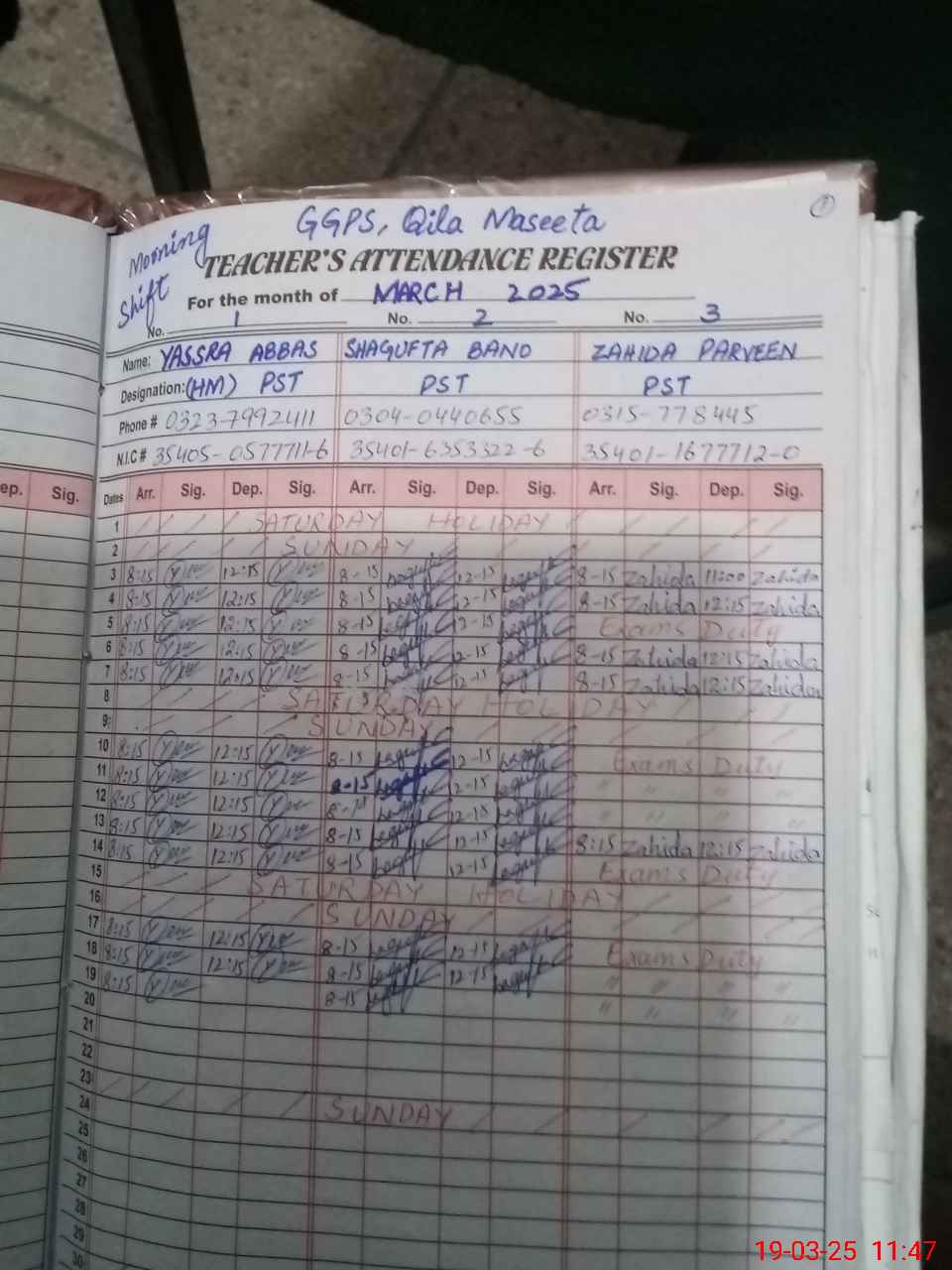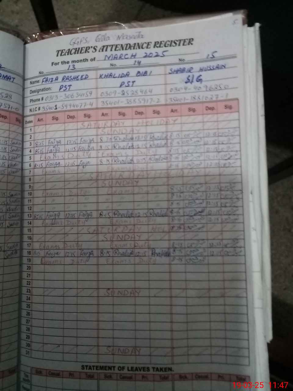 | 35**** | Za**** Pa**** | 1 | 1 | 0 | 0 | 0 | 0 | 0 | 0 | 0 | 0 | 0 | Exam Duty |