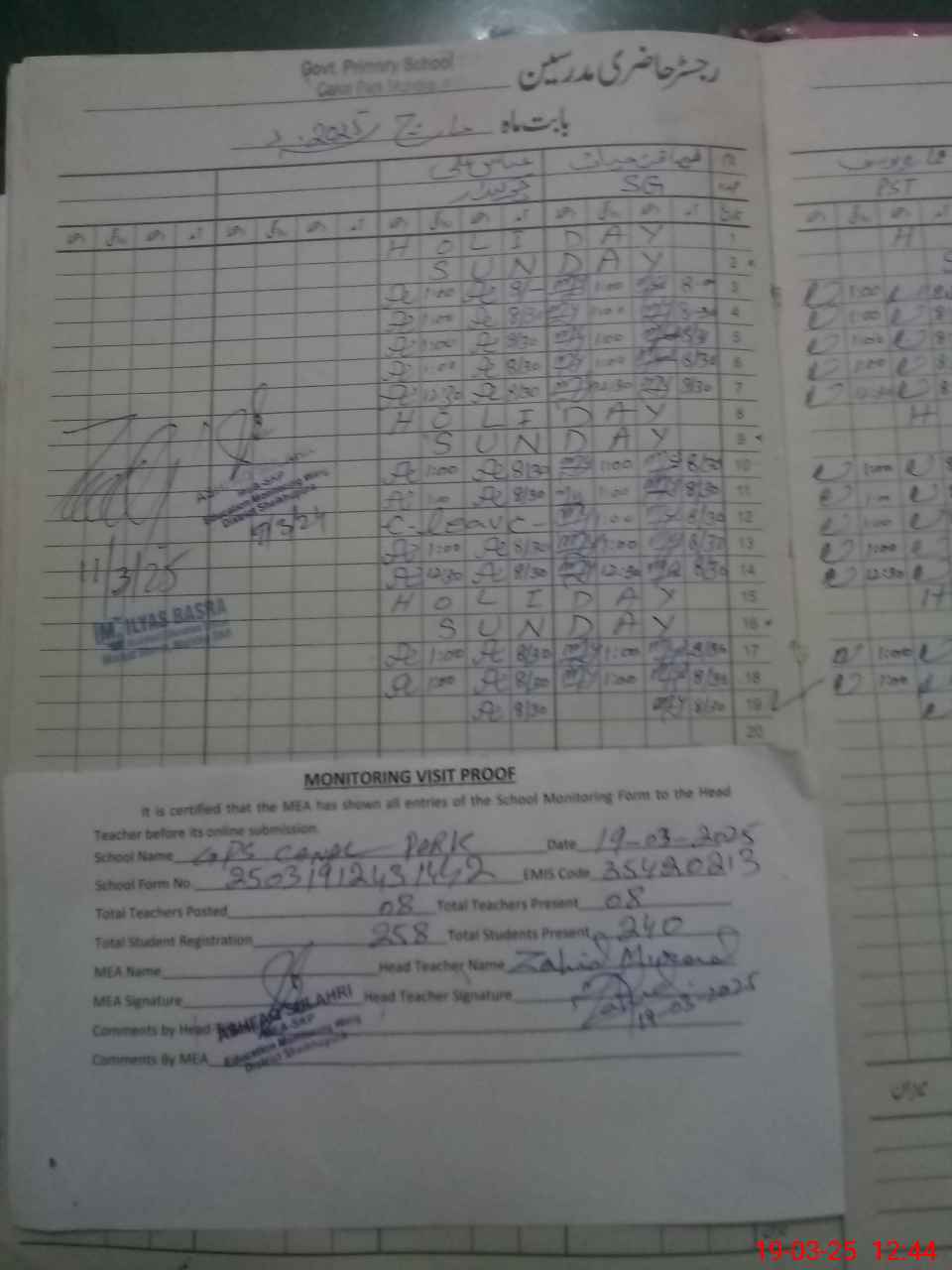 | Attendance Register | Head Teacher | MEA with School | Visit Proof |