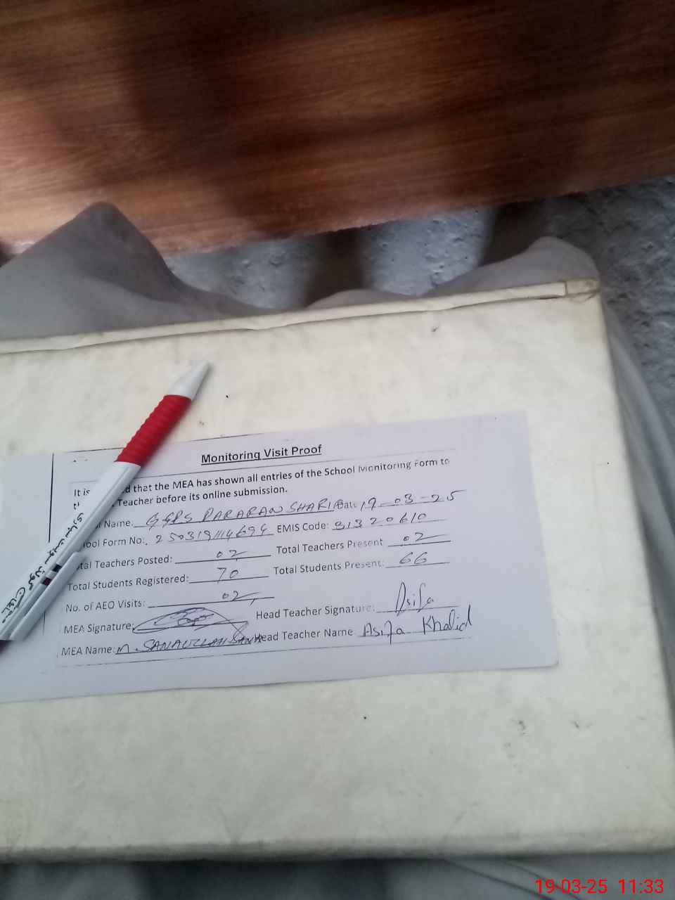 | EMIS Code: 31320610 | Name of School: GGPS PARARAN SHARIF JADEED | |||