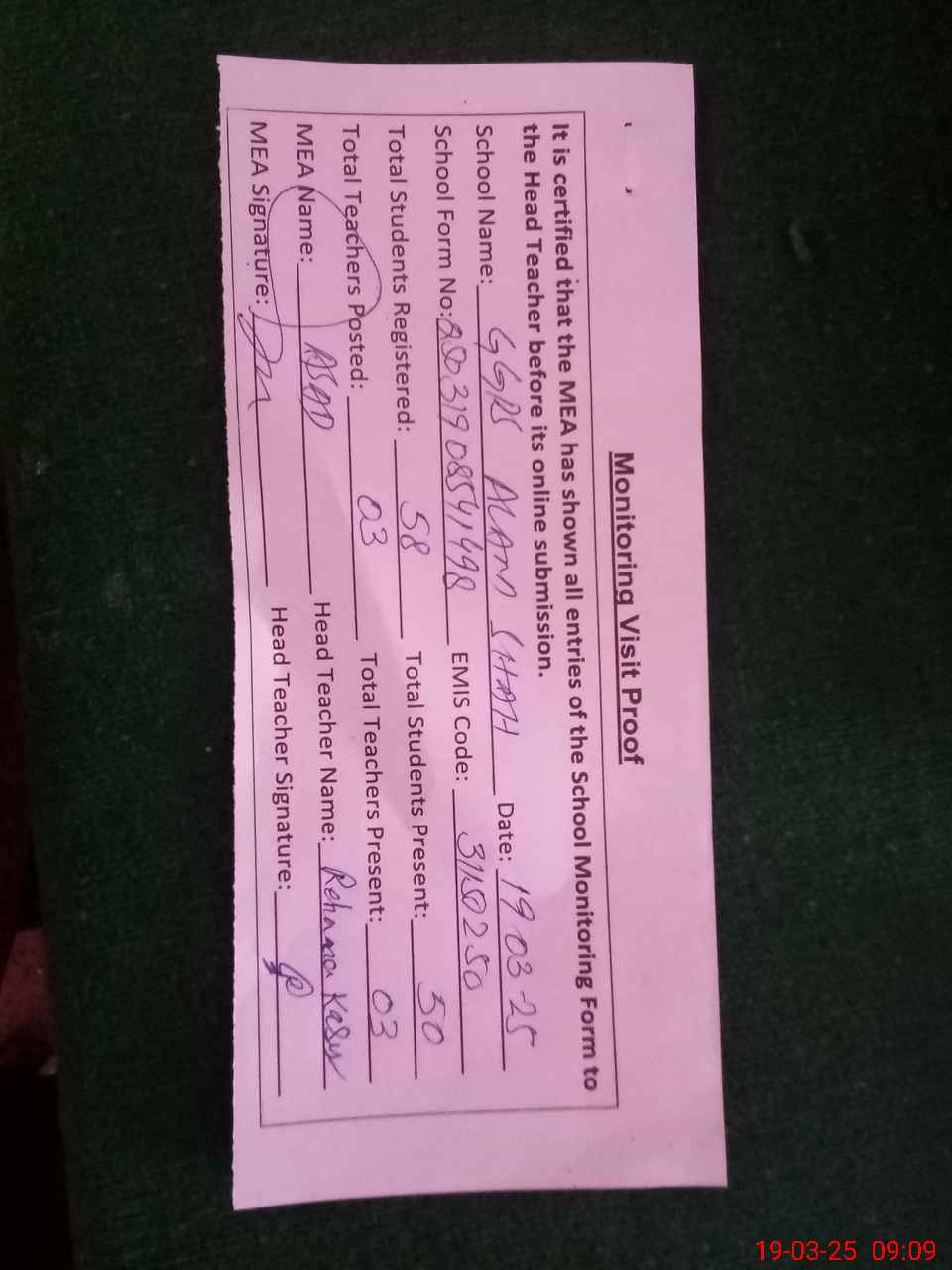 | EMIS Code: 31150250 | Name of School: GGPS CHAK ALAM SHAH | |||