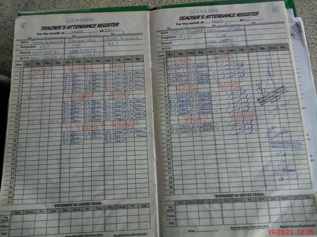 | Name: Sh**** No**** Designation: (School Headmaster's/Headmistress's) Pst Phone/Cell Number: 03**** |