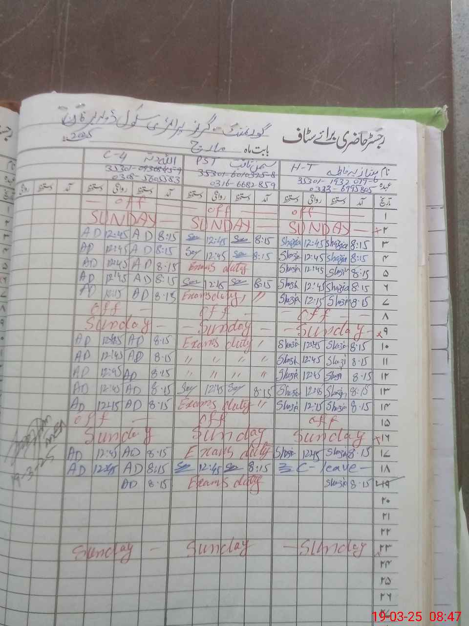 | 35**** | Sa**** Sa**** | PST | Regular | 0 | 0 | 0 | 0 | 0 | 0 | 0 | 0 | 0 | Exam Duty |