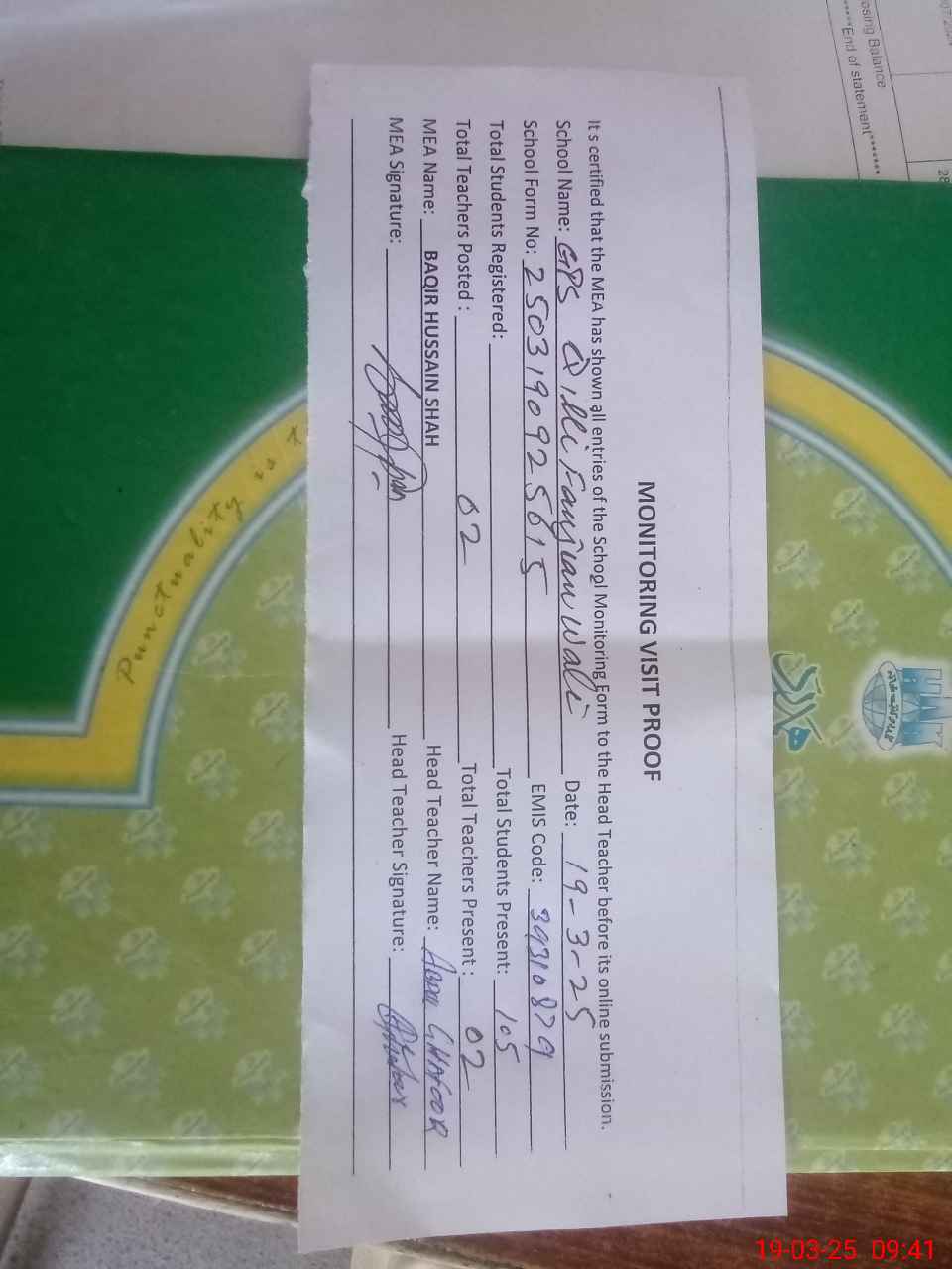 | EMIS Code: 39310879 | Name of School: GPS QALI FOJIAN WALI | |||
